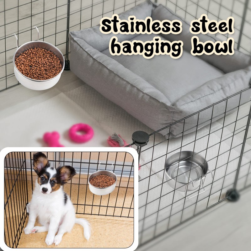 - Humanized Design: the dog crate bowl can be hung, and each dog food bowl is equipped with a bracket, can be installed at will to hang on the cage, chain link or fence, will not shake arbitrarily, preventing the water and food from dumping and spitting