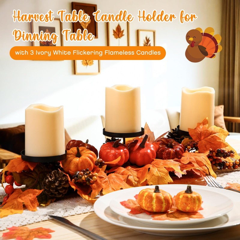 - Fall Table Centerpiece: it includes 1 fall maple leaf table candlestick and 3 flameless LED candles with remote controls, infusing traditional aesthetics with the convenience and safety of LED technology; They are ideal table decorations for the autumn harvest; Note: batteries are not included