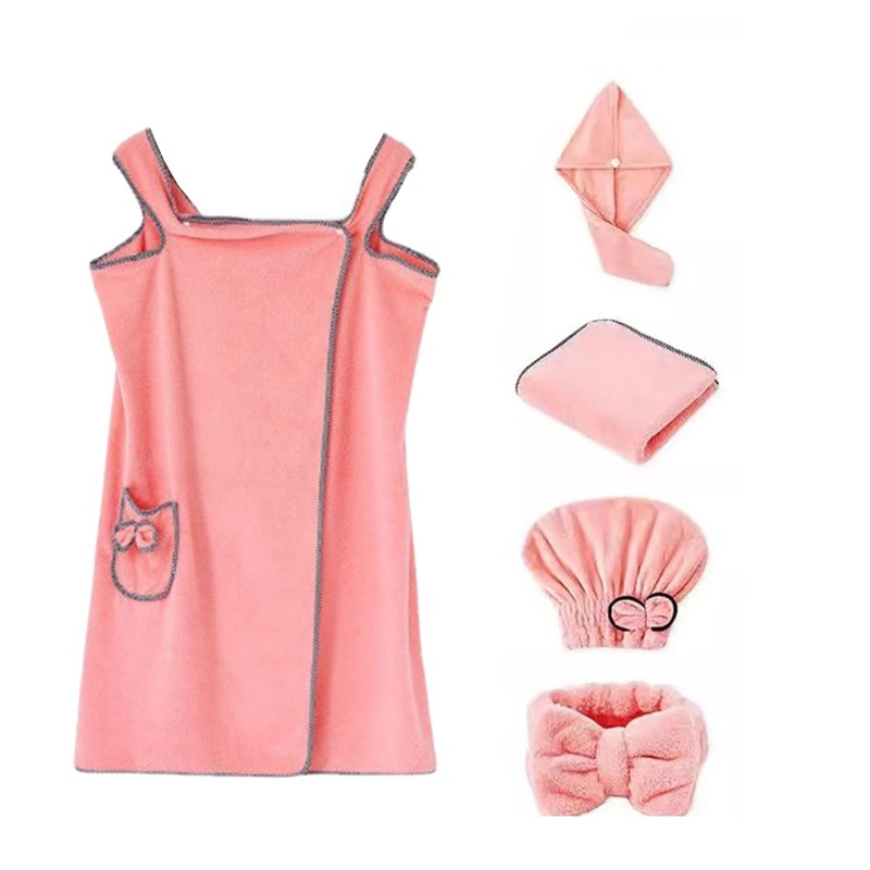 Mumusuki Toallas para Secar el Cabello, Toalla de Baño de Terciopelo Coralino Suave, Falda con Tirantes para Adultos, Banda para el Cabello, Vestido de Baño Usable con Fuerte Absorción de