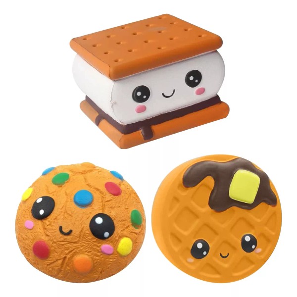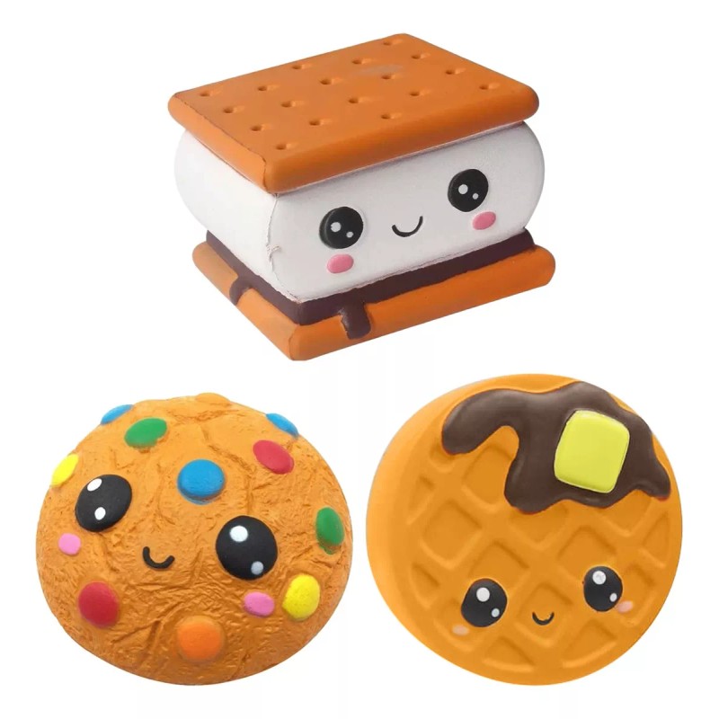 Muna Kit 3 Squishy Kawaii Olor Antiestrés Waffle Galleta Mordisco