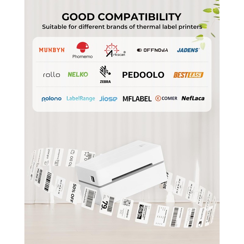 - Strong Compatibility: The labels are compatible with MUNBYN RW402B, 130B, 941BP, 129B, 941U, 941AP, RW401AP, Jadens, Rollo, Phomemo, Nelko, iDPRT, Zebra, OFFNOVA, CLABEL, Beeprt, ASprink, POLONO, LabelRange, Jiose, PRT, Itari, K Comer, Neflaca, Mflabel, Arkscan, Besteasy and other direct thermal printers. Not compatible with NIIMBOT, Dymo, Brother