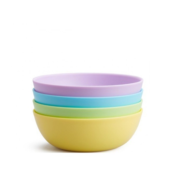 Pack of 4 colorful, matching bowls. Deep bowls with high sides - perfect for meals or snacks