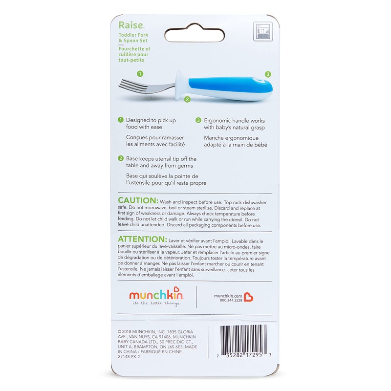 Munchkin Raise 4 unidades de tenedores y cucharas para niños pequeños, Azul/Verde, 12+
