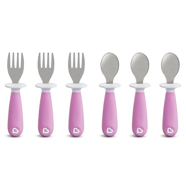 Munchkin® Raise™ Toddler Fork and Spoon Utensil Set, Rest Keeps Tip Off Table, BPA Free, 6 Pack, Purple