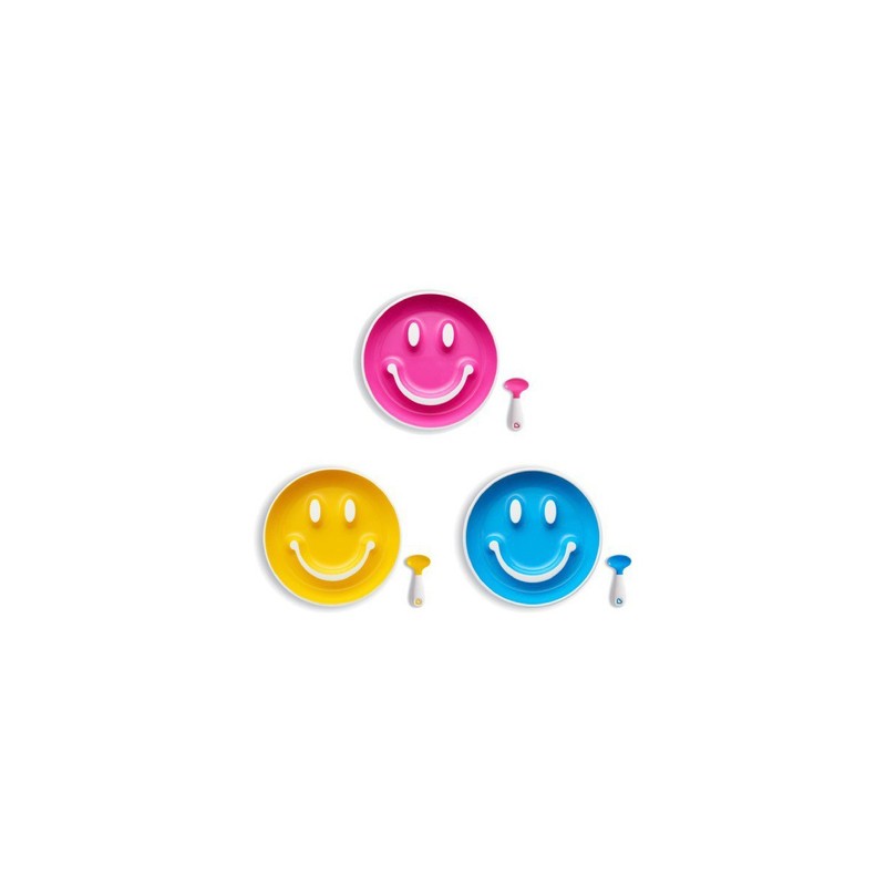 - The set includes (1) a plate with a suction cup in the shape of a smiling face and (1) a Scooper κου spoon to teach the child to eat on his own
