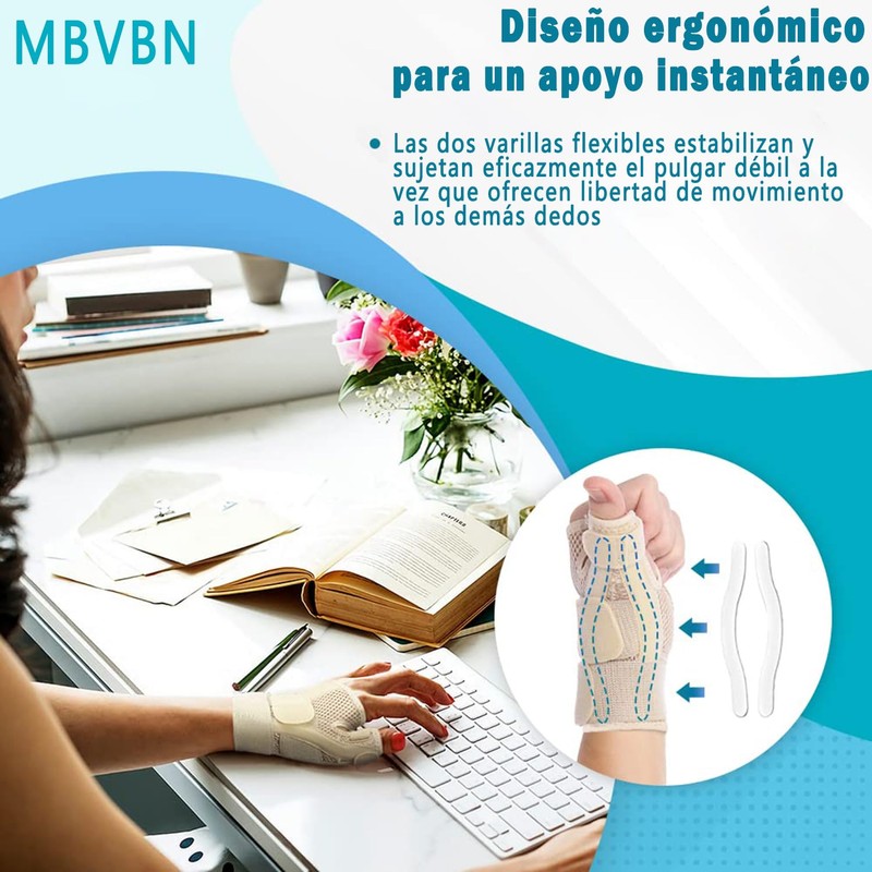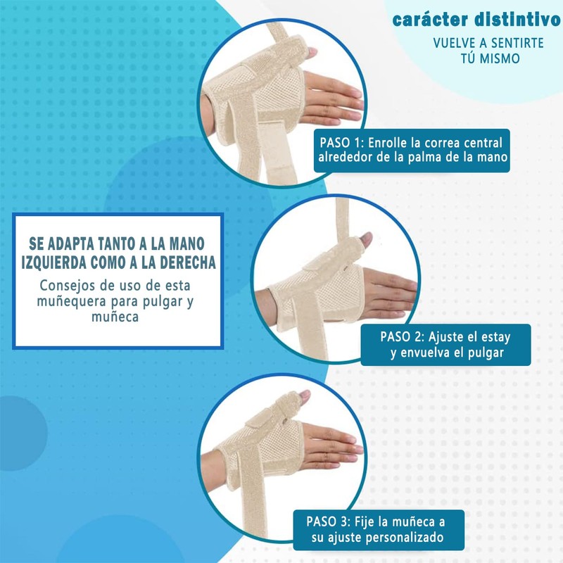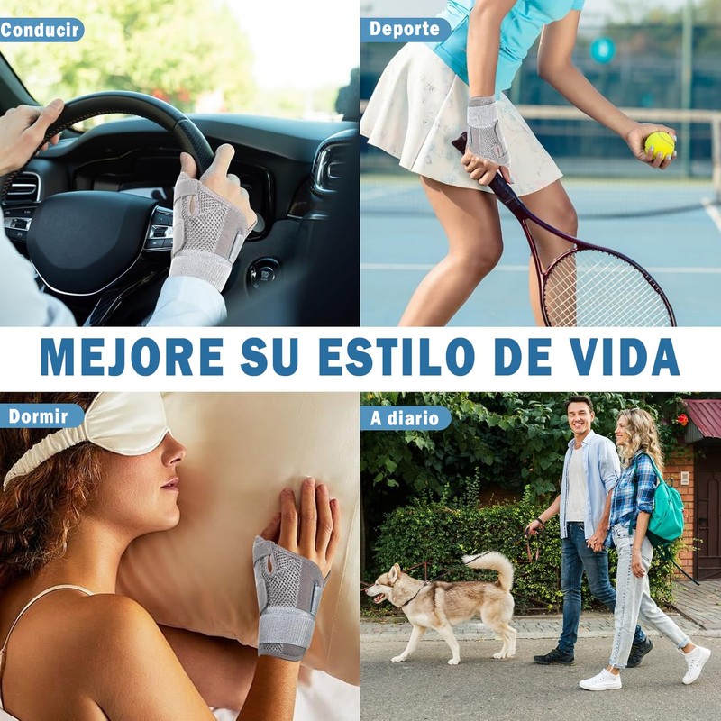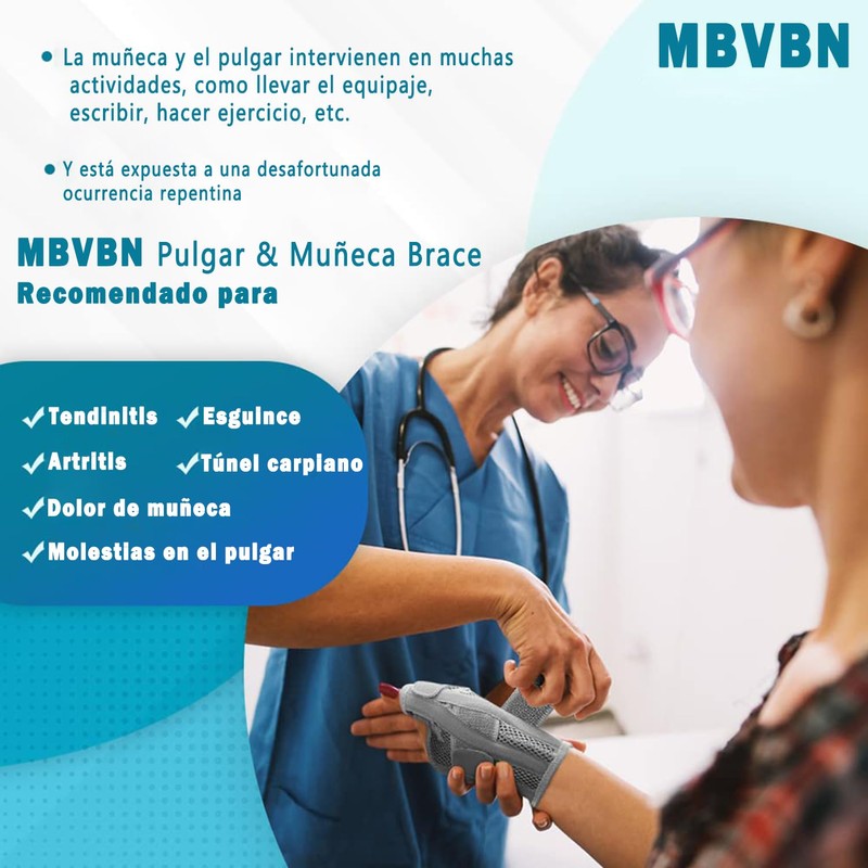 Muñequera para el pulgar, soporte de muñeca ajustable,la férula para el pulgar y la muñeca es adecuada para las manos izquierda y derecha, para el dolor, el túnel carpiano, la artritis, la tendinitis, las fracturas, etc., livianas y transpirables.(1 piez