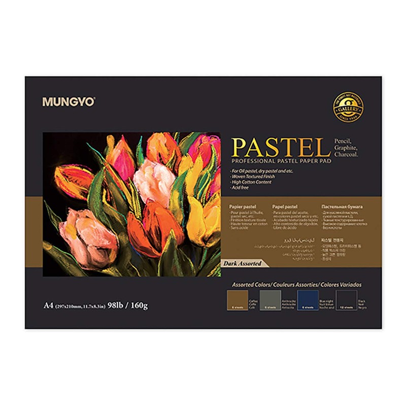 MUNGYO Professional Pastel Paper Pad A4 Size for Oil Pastel, Dry Pastel 30 Sheets (Dark Assorted)