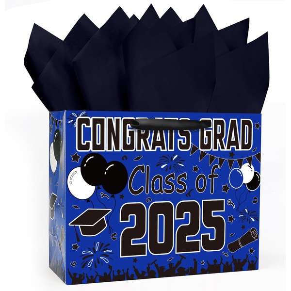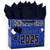 MUNILAIL 13 Inches Graduation Gift Bag 2025 Blue Paper Gift Bag with Tissue Paper for High School College Graduates Class of 2025 Grad Party Decoration