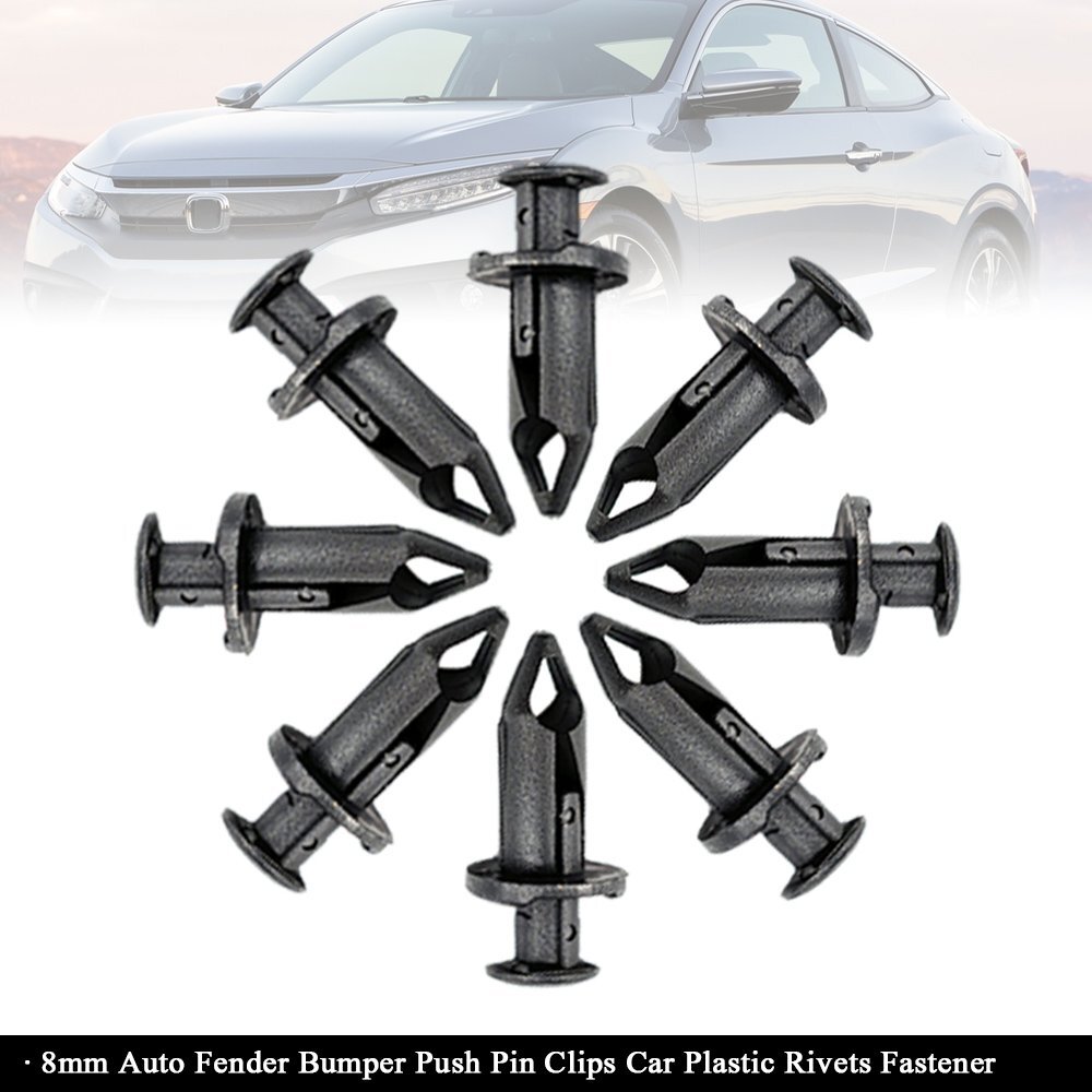 Car 100x 8mm Dia Hole Plastic Rivets Fastener Auto Fender Bumper Push Pin Clips