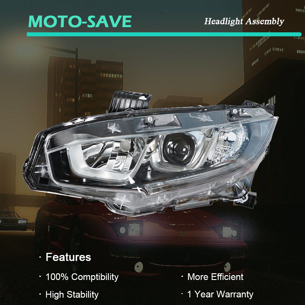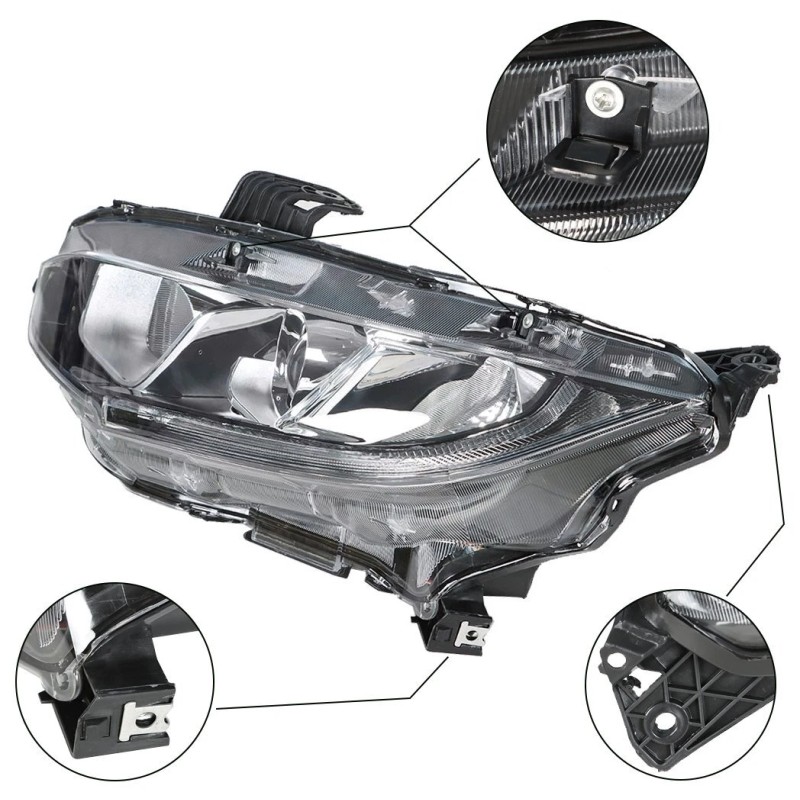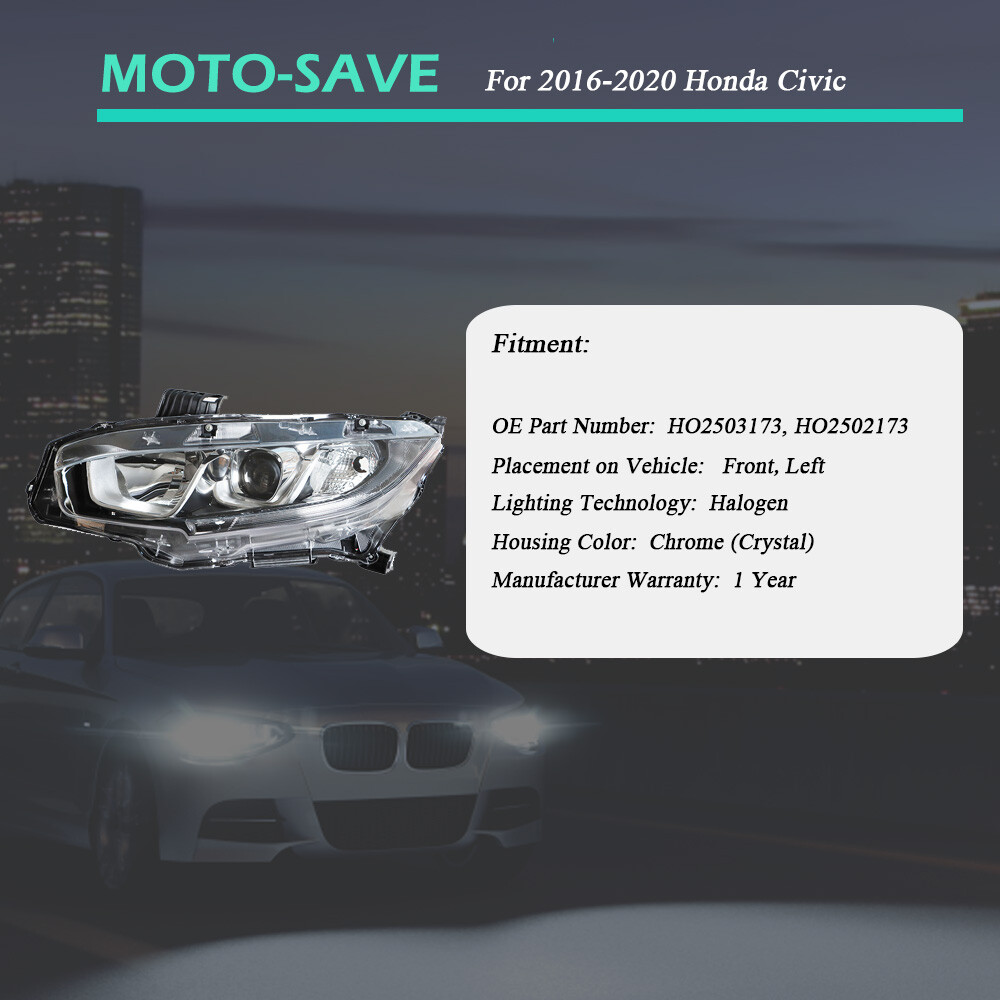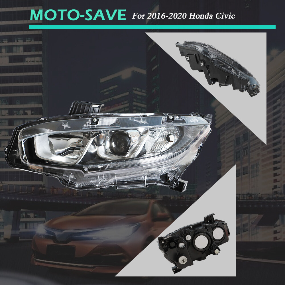 munirater For Honda Civic 2016-2020 Headlight Assembly Halogen Chrome Clear Driver Side