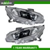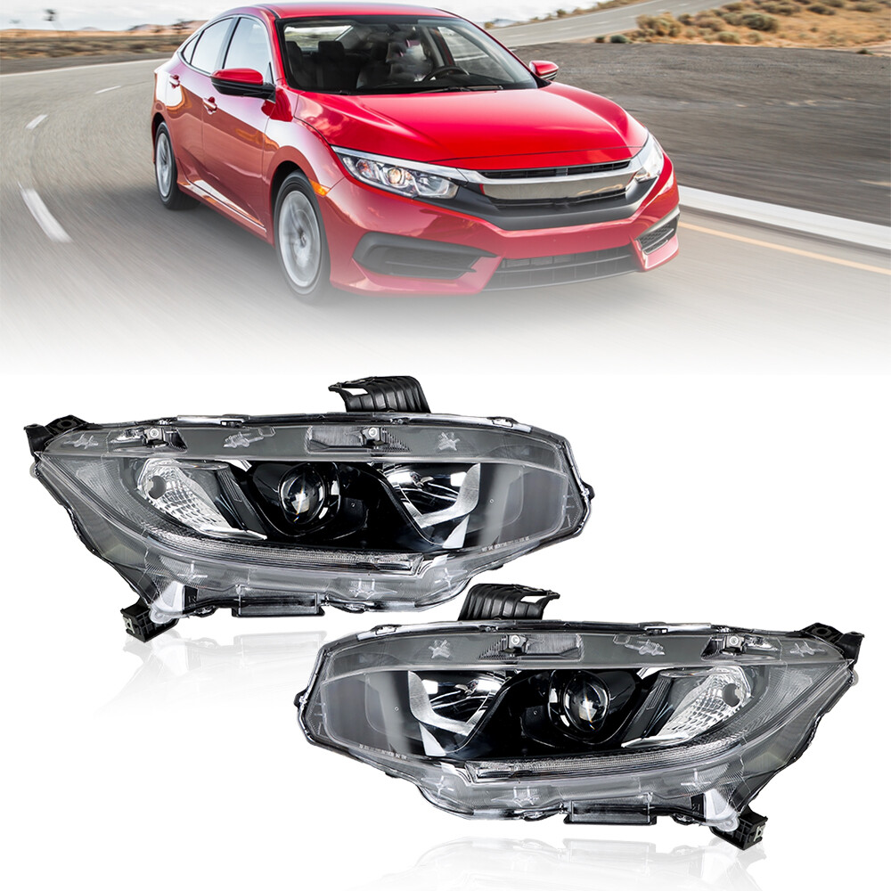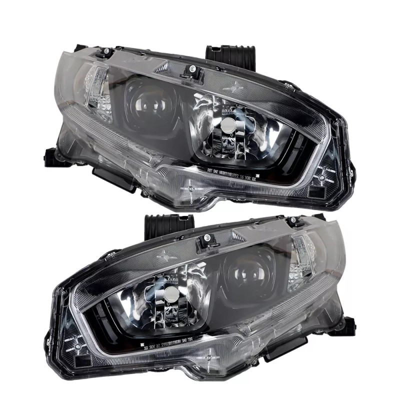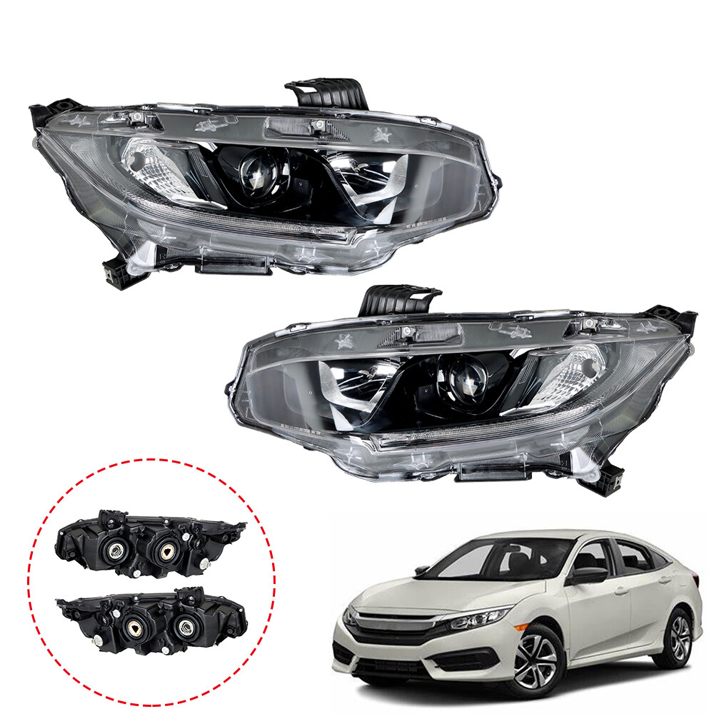 For Honda Civic 2016-2021 Projector Headlight Black Housing Halogen Right+Left