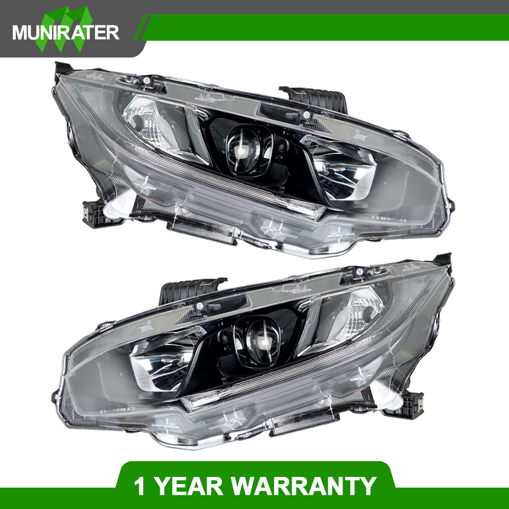 CONDITION——New WARRANTY——1 Year BRAND——Munirater TYPE——Headlight Assembly FIT FOR——For 2016-2021 Honda Civic OE NUMBER——33150TBAA01, 33100TBAA01 QUANTITY SOLD——1 Pair (Left+Right Side) Headlights MATERIAL——Plastic PLACEMENT ON VEHICLE——Front,Left,Right