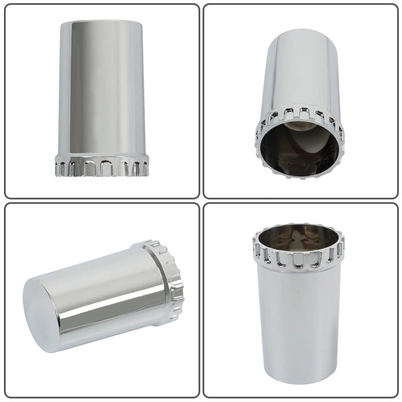 Kit Includes——Chrome Plastic Front Axle Cover x 2,Chrome Plastic Rear Axle Cover x 4,Thread-On Cylinder Nut Covers x 60,Nut Cover Tool x 1