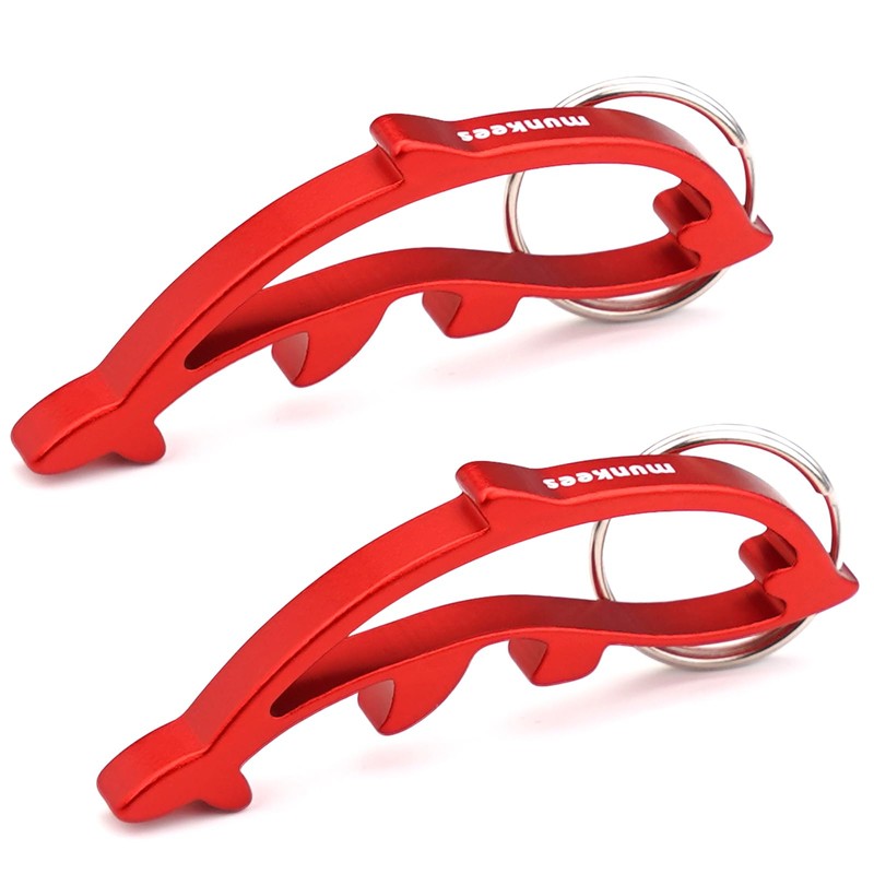 munkees イルカ 栓抜き キーホルダー 2個パック アルミニウム キー ビールオープナー アウトドア 旅行アクセサリー レッド