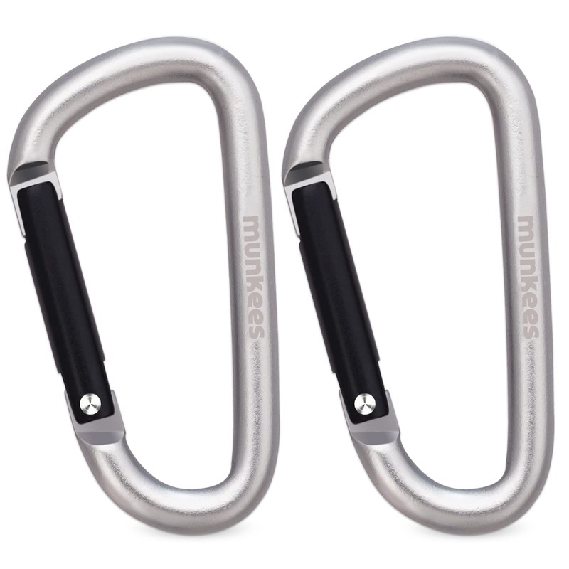 munkees Mosquetón en forma de D para llavero con hebilla de botella para senderismo, camping, Gris, Large
