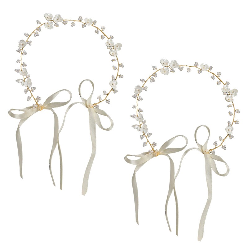 MUNSKT 2 Piece Floral Hair Accessory, Girls' Baptismal Communion Headpiece, White Pearl Bouquet Headband, Suitable for Attending Parties, Birthdays, and Celebrations
