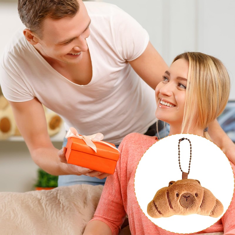 MUNSKT Cute Croissant Plush Keychain, in Capybara Face Print, Funny Soft Food Plushies Toy, Gift for Kids Birthday, Backpack Accessories, Key Pendant