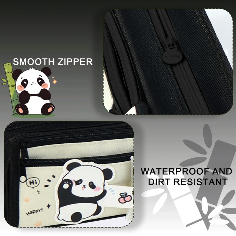 - Easy to storage: Panda school pencil case. The smart layout offers exclusive space for each small item, panda school pencil case with a well-organized multi-layer storage system, a built-in transparent mesh bag and a special pen slot, easy to store and easy to use. Perfect for students who need a variety of tools such as erasers, rulers, stickers, in addition to pens etc.