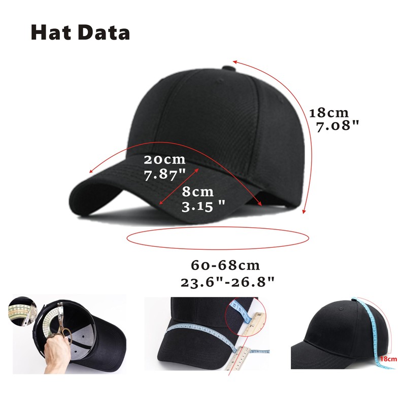 - Please note: size only large size, not large-headed people do not buy. Head Circumference: 23.6"-26.8" (60-68 cm). Brim/Bill Length: 3.15 inch(8cm). Hat Depth:7.08 inch(18cm).100% Cotton.