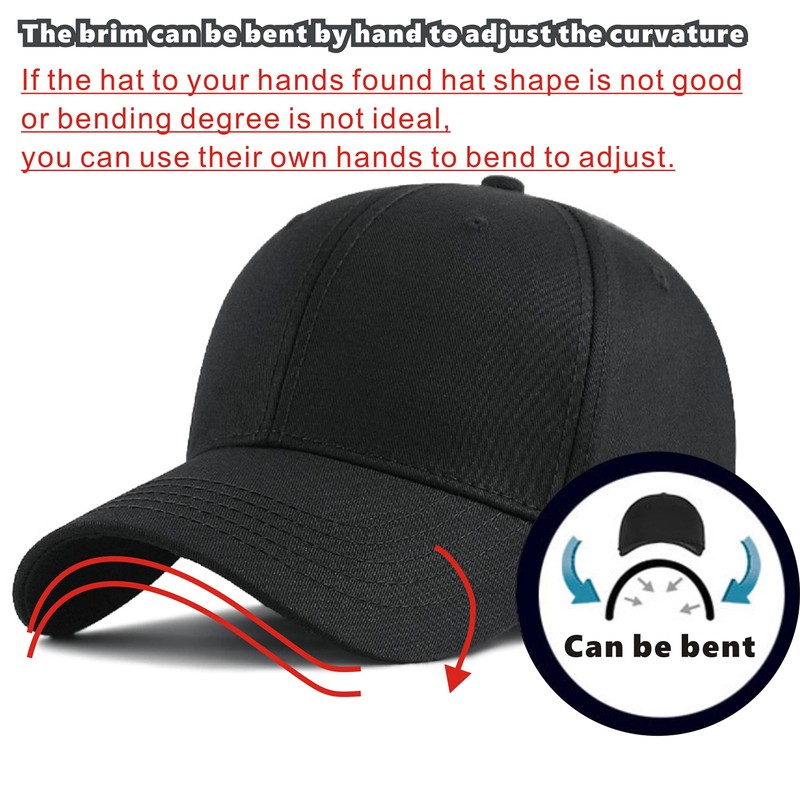 • This baseball cap is with strapback adjustable. You can adjust the cap size by the metal strap to make the baseball cap fit your head comfortably and securely. Fits for both women and men to wear.