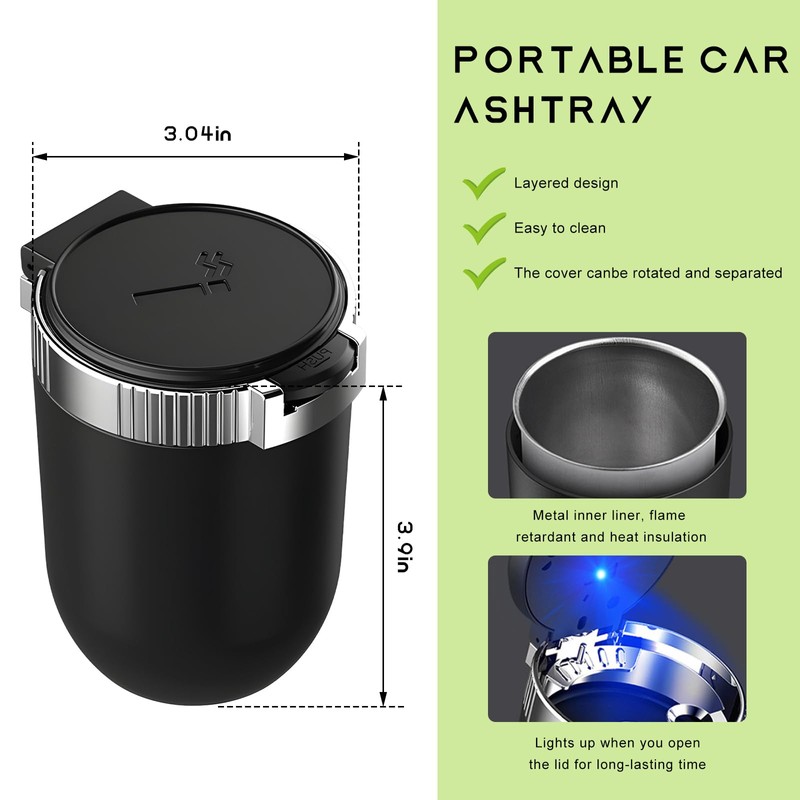 - LED Illumination: Featuring a soft blue LED light, this ashtray ensures clear visibility in low-light conditions, making it convenient for nighttime use. The gentle glow not only adds a modern touch to your car's interior but also helps you quickly locate the ashtray when needed