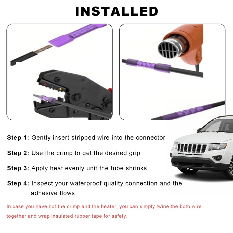 - Método de instalación: Primero, inserta el cable pelado en el conector. En segundo lugar, engarza para garantizar que esté seguro. En tercer lugar, aplica calor uniformemente hasta que el tubo se encoge y el calcomanía salga. Por último, comprueba si hay un sello impermeable. Si no tienes herramientas, puedes girar los cables y envolverlos con cinta aislante