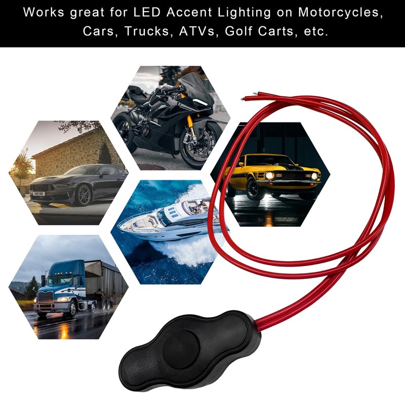 - Aplicación flexible: este interruptor impermeable de 12 V está diseñado para sistemas de CC que requieren un control de energía confiable. Su rendimiento impermeable superior hace que sea ideal para iluminación LED en varios vehículos, incluyendo coches, camiones, carros de golf, motocicletas y vehículos todoterreno