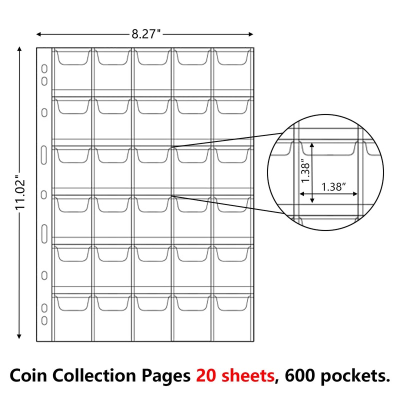 - 2.Collector coin protector sheets: The coin pocket is made of Eco-Friendly PVC, ACID-FREE, sturdy and durable, waterproof and dust-proof.
