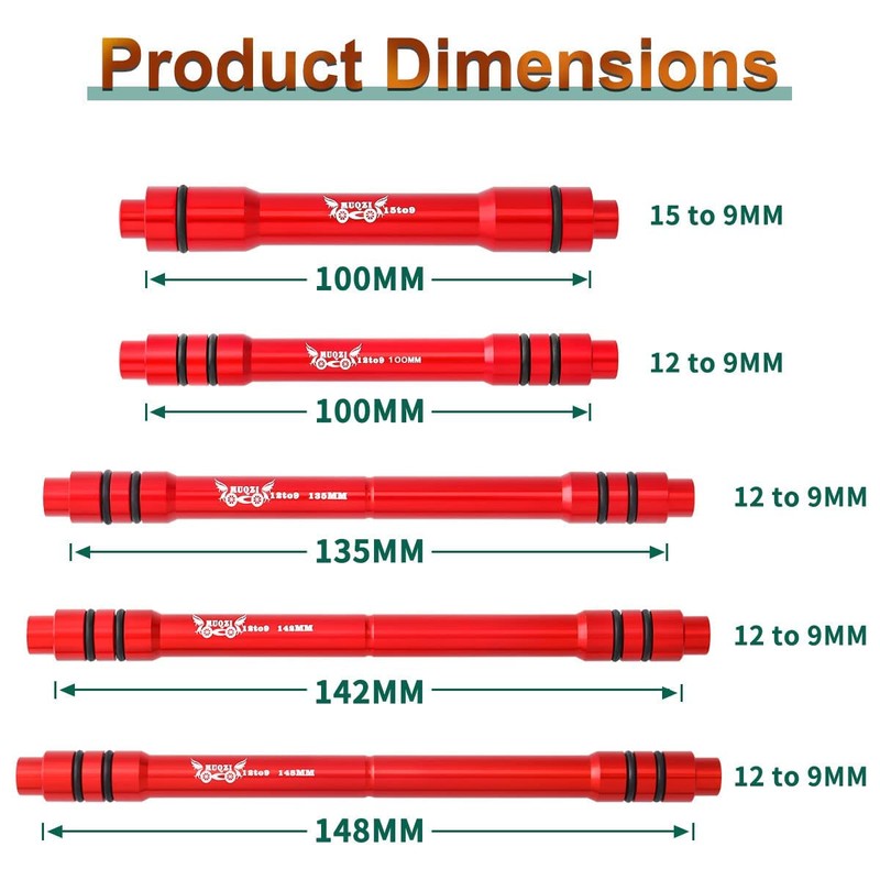 • 【Multiple Size】: 15 MM to 9MM Thru Axle Hub / 12 MM to 9MM Thru Axle Hub quick release. Please measure the opening length of your bike hub, and then determine the diameter of the middle hole of the hub before purchasing.