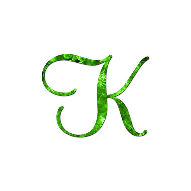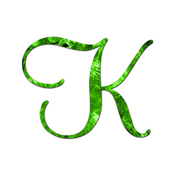 Mural Cursive Font K Initial - Vinyl Decal Sticker - 4.8" x 3.75" - Green Flames