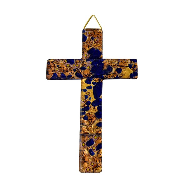 Murano Glass Cross Approx. 14.5 x 9 cm Blue/Gold