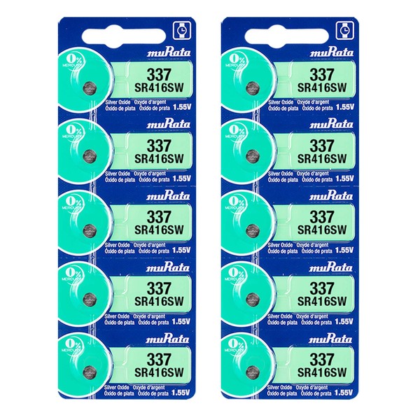 Murata 337 Battery SR416SW 1.55V Silver Oxide Watch Button Cell (10 Batteries)