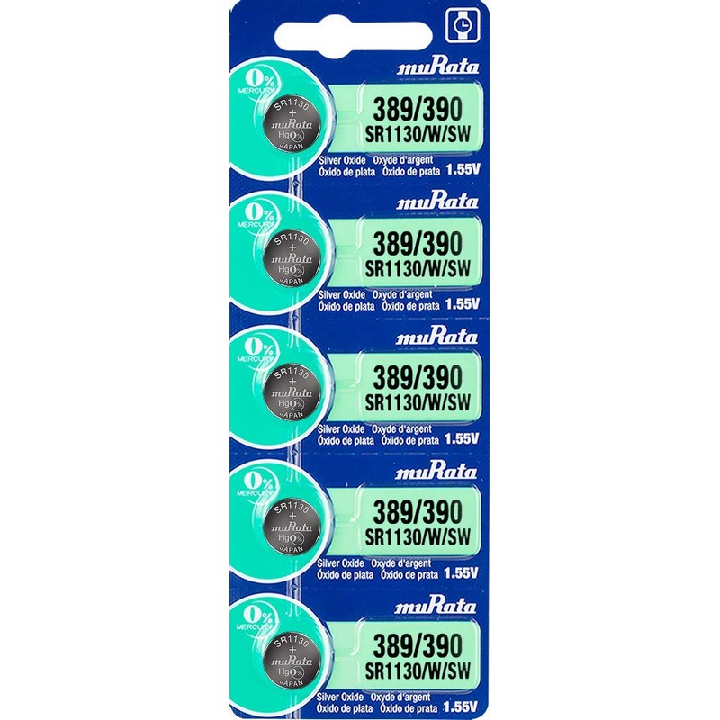 - Murata 389/390 SR1130/W/SW 1.55V Silver Oxide Button Cell Watch Battery, 85mAh