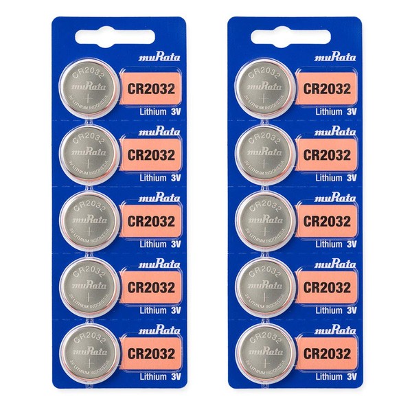 Murata CR2032 Battery DL2032 ECR2032 3V Lithium Coin Cell (10 Batteries)
