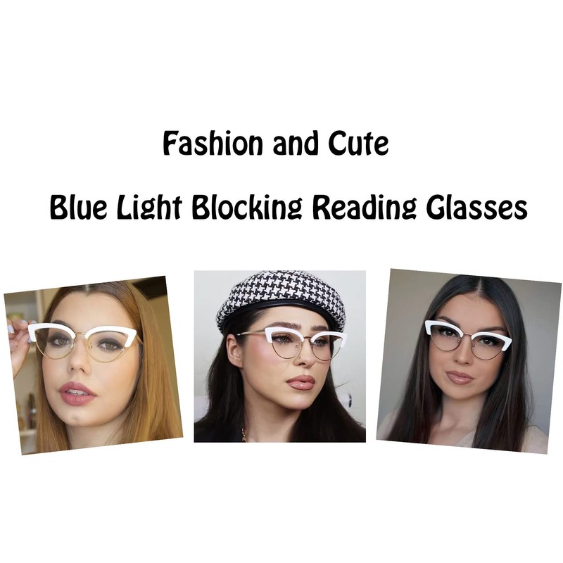 Murddoa 4 Pack Womens Cat Eye Blue Light Blocking Reading Glasses Fashion Eyeglass Frames Cute Computer Reader(4 Pairs,3.00)
