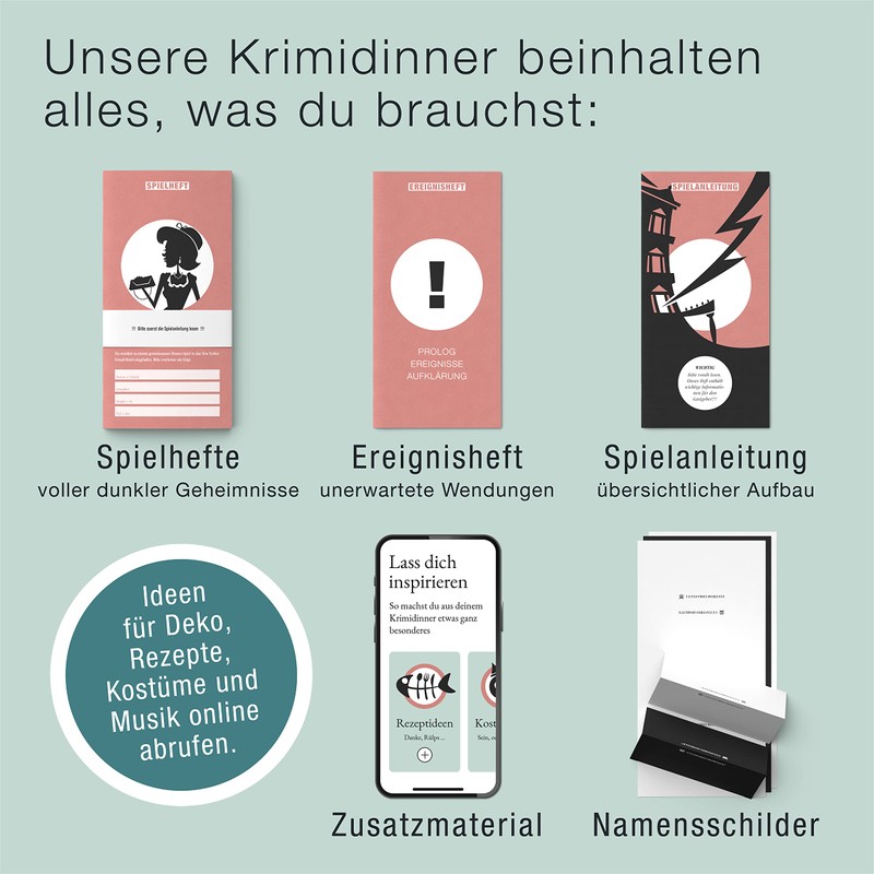 Experience an evening full of excitement, intrigue and surprises with our Krimi dinner games for the home!