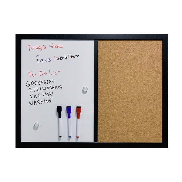 MURIWAI Combination Board Magnetic Dry Erase Board & Corkboard,24''x18'' Combo Board, Black Frame