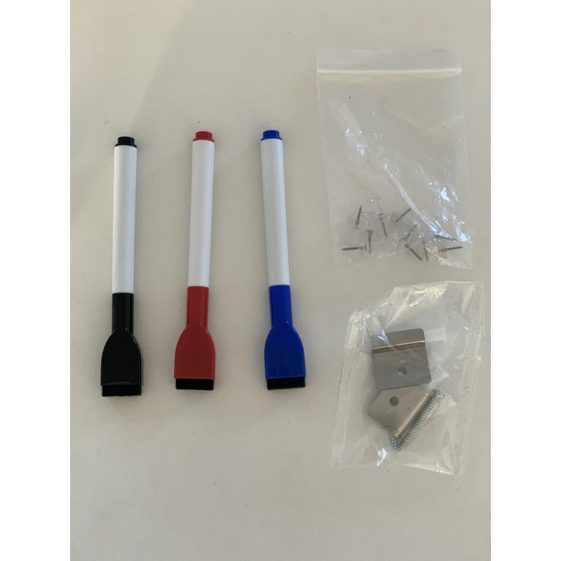 - **Accessories Included:** - Typically comes with necessary accessories like mounting hardware, dry-erase markers, magnets and push pins, ensuring a complete setup and immediate use.