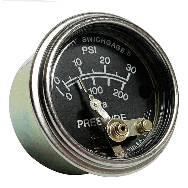 - The 20P-30 Pressure Swichgage instrument has a 2 inch (51 mm) dial, and a pressure range of 0-30 psi. The gage mechanism is enclosed in a steel case coated to resist corrosion, and utilizes a polycarbonate break-resistant lens and a polished stainless steel bezel to help protect this rugged instrument.