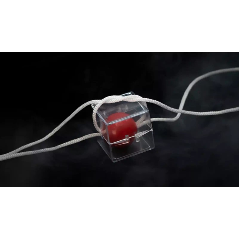Next, you place the ball inside the clear box and tie the rope around the box. Your audience member is asked to hold on to both ends of the rope and PULL! Magically, the ball has ESCAPED FROM THE ROPES!