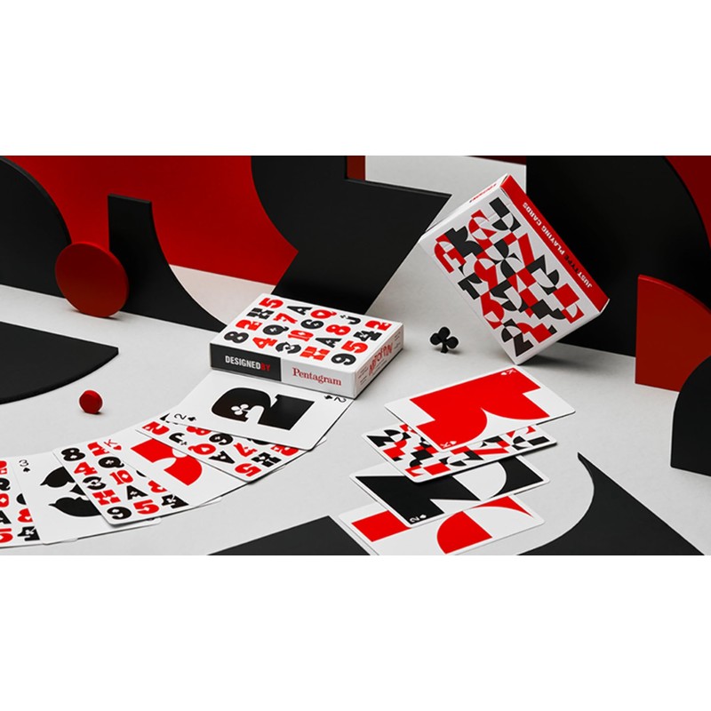 Just Type is a modern reinterpretation of classic playing card design and a tribute to the different ways in which the spirit of type can be modified. Paula Scher, a titan of the graphic design world has helped to redefine modern typography. Working with fellow Pentagram designers Jeff Close and Kristin Huber, Scher has playfully deconstructed the classic French design of traditional "playing cards" and removed all extraneous elements. All that's left is Just Type. Edition 1 : Embraces big, bold postmodern elements. Oversized numbers constructed of simple shapes fill the entirety of each card. While each composition could stand on its own as a piece of art, taken together, this collection of 56 images represents a totally unique approach to a familiar form factor. Each number and letter is pushed to the breaking point, shattered into elemental pieces that evoke abstraction, yet communicate so clearly, they can be read from across the room. Edition 2 : Offers a minimalist approach in the spirit of classic mid-century design. Each card features an amalgamation of suit and value that expresses its identity with a single figure. An extraordinarily clever visual system makes use of negative space to incorporate the traditional pips (clubs, hearts, spades, and diamonds) into custom-drawn letterforms. The result is both beautiful and humorous. Together, these exceedingly adaptive versatile explorations of type prove once again that Scher is a master of pushing words beyond their literal meaning into the realm of purely visual expression. Or, as she more succinctly puts it, "Typography is painting with words." With these Just Type Playing Cards , Paula Scher demonstrates, once again, why she is one of the most influential and respected graphic designers in the world. Printed by the US Playing Card Company on premium card stock and housed inside a letterpress-printed tuck box.