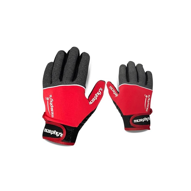 Murphys V2 Gaelic Football Adult's Gloves, Premium Latex Field Players Mittens, Durable Hook and Loop Closure, Grey and Red, 8, Small