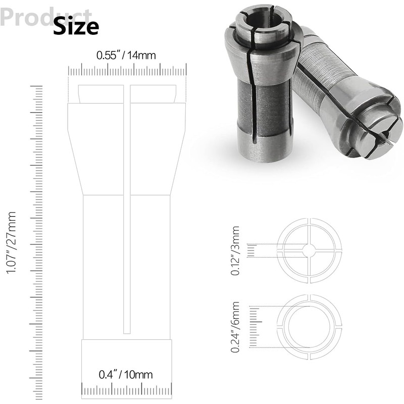 - Package & Size - 2 packs of 3mm die grinder collet, 2 packs of 6mm die grinder collet. Suitable for 1/8" and 1/4" standard grinding bits. Use collet chucks to add versatility to mold grinders, routers, and other tools
