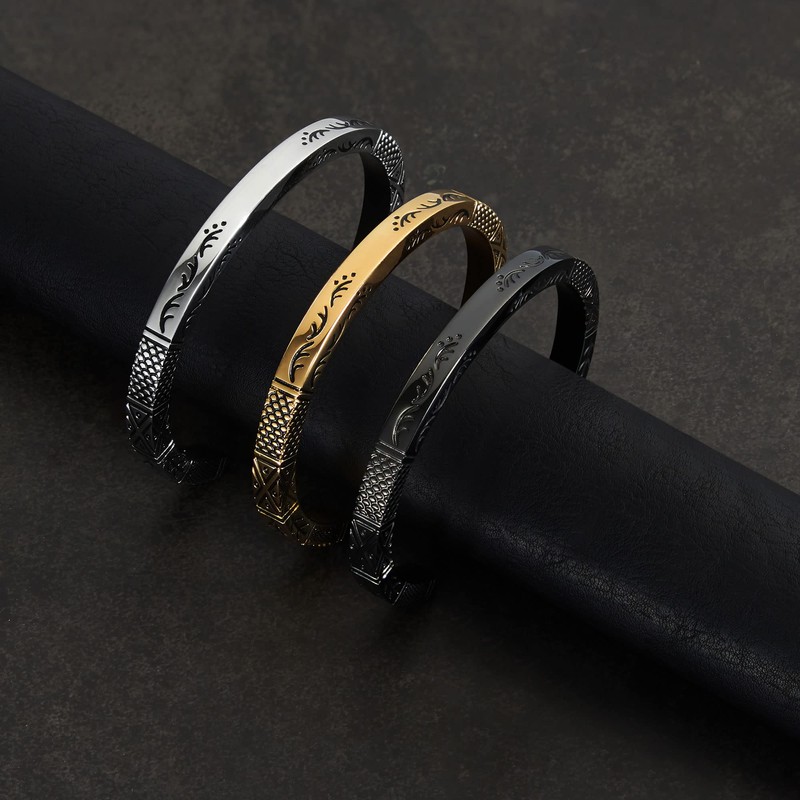 - STAINLESS STEEL BRACELET The Viking men's bracelet is made of 316L stainless steel, which is tarnish-resistant, lead-free and hypoallergenic, mirror polished with smooth edges. With multiple length options, this men's bracelet is a beautiful, stylish and affordable alternative to solid silver/gold bracelets that can also be worn by people with sensitive skin.