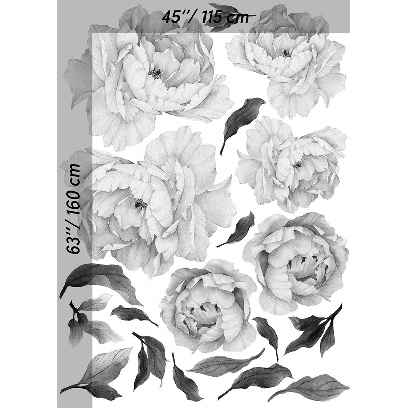 Murwall Floral Peony Wall Decal Black and White Florals Removable Peel and Stick Monochrome Flower Bouqet Wall Sticker Livingroom Entryway