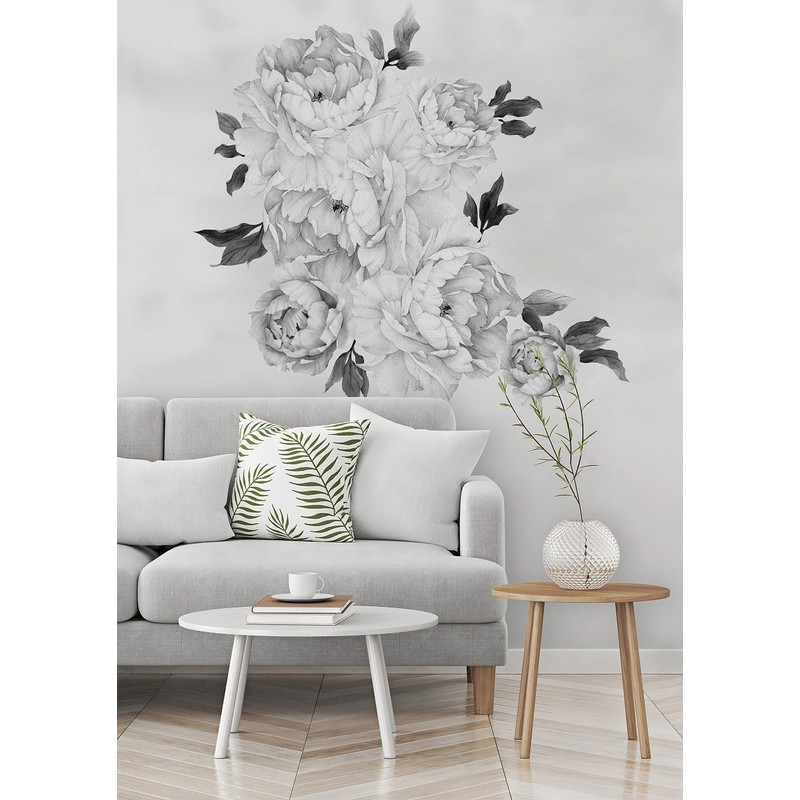 Murwall Floral Peony Wall Decal Black and White Florals Removable Peel and Stick Monochrome Flower Bouqet Wall Sticker Livingroom Entryway