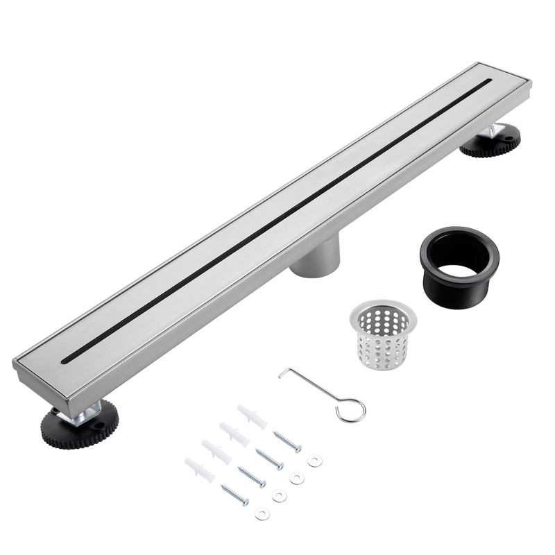 - [Packaging Details]:The package comes with the drain body and cover, hair strainer, hair catcher, thread adapter, adjustable leveling feet, and an expansion screw kit. Fits US NO-HUB system. Please note that the drain base is not included in the package