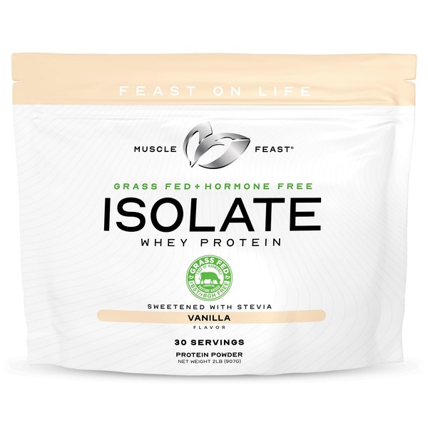 Muscle Feast Grass-Fed Whey Protein Isolate, All Natural Hormone Free Pasture Raised, Whey Isolate Protein Powder for Men and Women, Clean, Gluten-Free, Delicious Isolate Protein - Vanilla, 2lb