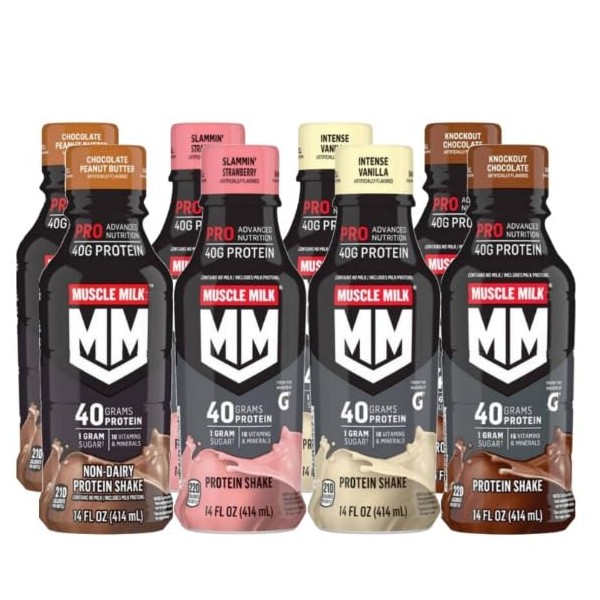 Muscle Milk Pro Advanced Nutrition Shake, 14 Fl Oz, 40 g Protein, 8 Bottles (Variety Pack)