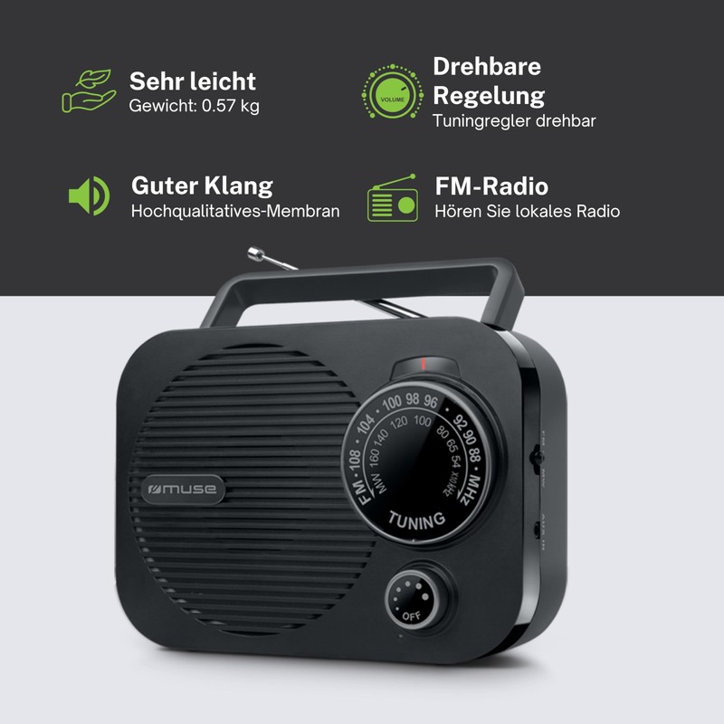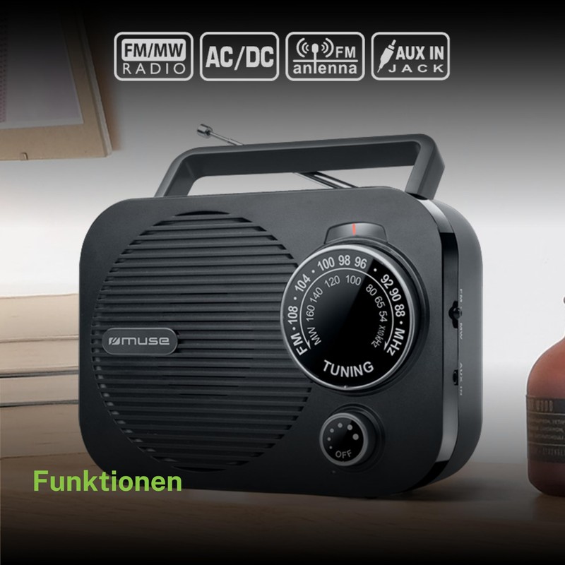 Muse M-050 R Portable AM/FM Radio with Aux Input